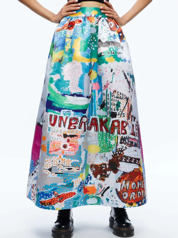 DescriptionThis Gorgeous Ankle Length Skirt Includes So Many Details That Make It Extra-Special. In Effect: The Wearable Artwork Print, Extra Flared Skirt, Elastic Waistband And A High Waist.Basquiat Crafted Unbreakable By Skillfully Blending His Signature Elements – Words, Images, And Vibrant Colors.Details- A+O X Basquiat