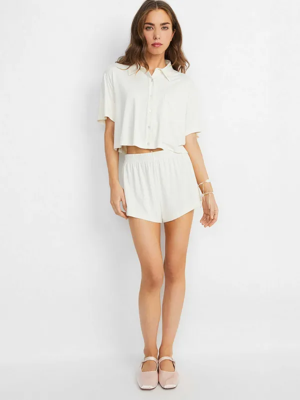 Sport Your Feels With The Madden Pajama Set. Taking Cues From Vintage Gym Shorts, It’S A Winning Look From Dusk To Dawn. The Big Feelings Waistband Gives That Mvp Fit, Chic Side Stripes Sprint With Style, And Our Button-Down Top Is The Perfect Jersey For Team Cozy.