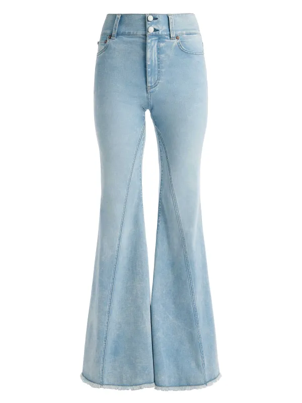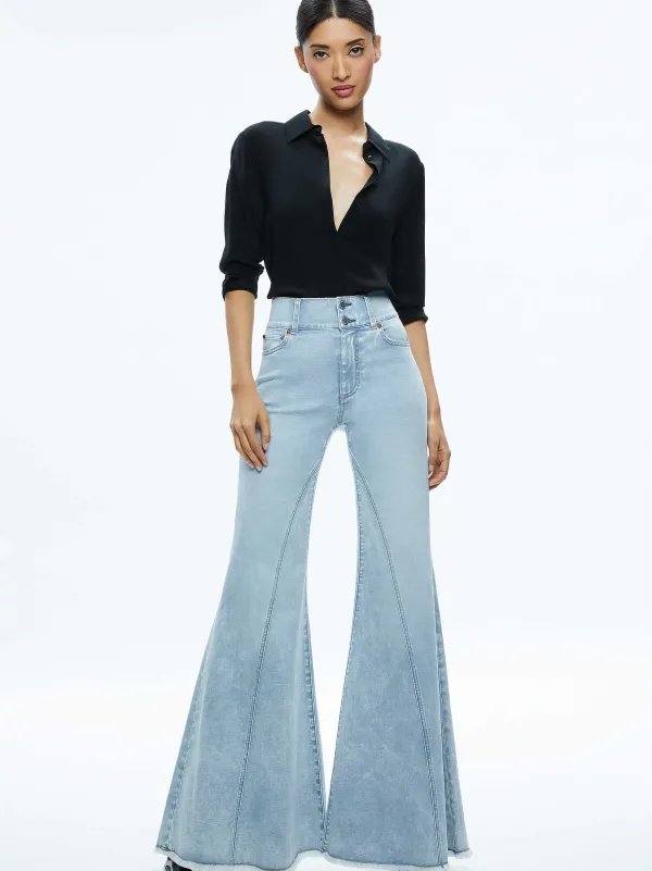 DescriptionA Signature A+O Fit, Our Beautiful Jean Features A Wide Leg, Mid Rise And Double Button Front Closure. The Exagerrated Hem Adds Drama While The Faded Denim Lends Just The Right Amount Of Vintage Vibes.Details- Wide Leg Jean