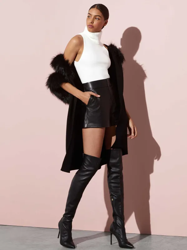 DescriptionWho Says Shorts Are Just For The Summer? The Cady Leather Short Is The Perfect Short For Fall. Made With 100% Leather, It’Ll Keep You Warm On Those Chillier Days And Nights, Just Add Tights And Your Favorite Boots. In Classic Black, It’S Versatile, Pairing Perfectly With Every Top, Blouse, And Sweater You Wear It With.Details- Front Zipper Closure