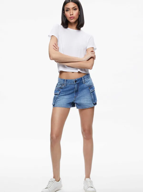 DescriptionYou’Re Looking At The Cutest Little Cargo Short You’Ve Ever Seen. With A Low-Rise, In Denim, She’S So Comfortable And Easy To Wear. Add A Tee, Sneaks And Off You Go.Details- Denim Short