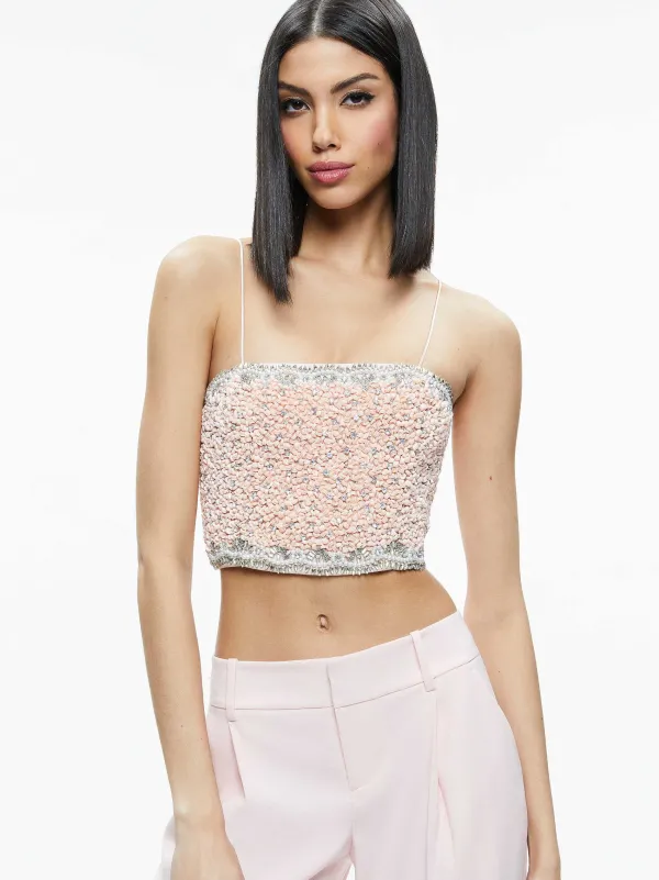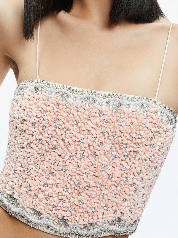 DescriptionThis Cute Spaghetti Strap Top Is A Total Outfit Maker, With Crystals Throughout And A Cropped Construction. We Love The Barely-There Skinny Straps And The Contrasting Crystals At The Hems.Details- Cropped