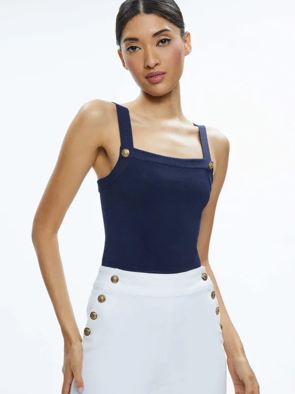 DescriptionThis Bodycon Tank Feels Like The Perfect Nautical Piece, Ideal For Any Vacations You Have Planned Because The Stretch Fabric Packs Up Like A Dream. We Love The Gold Button Accents, As The Perfect Finishing Touch.Details- Cropped