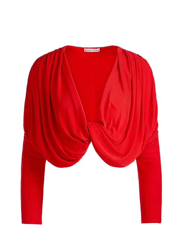 DescriptionThe Elda Is A Romantic Cropped Top With The Prettiest Drape. It’S Made From A Silky Fabric That Plunges At The Neckline And We Added Flattering Ruching At The Sides. It’S Your Go-To For When You Need A Top That Stuns.Details- Long Sleeve