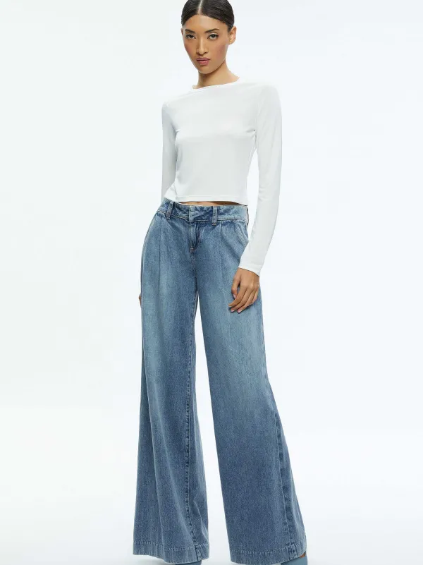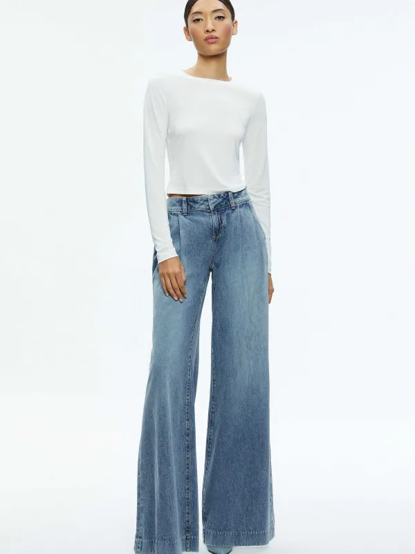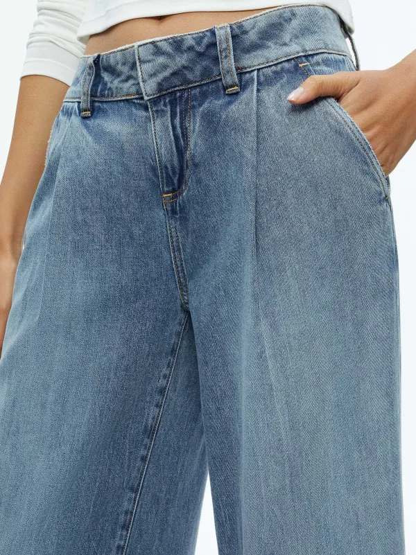 DescriptionThe Eric Low Rise Jean Is Destined To Become Your New Favorite With Front Pleats And A Flattering Wide Leg. We Love The Faded Blue Cotton That Features A Touch Of Lyocell For An Extra Soft And Silky Finish.Details- Wide Leg Jean