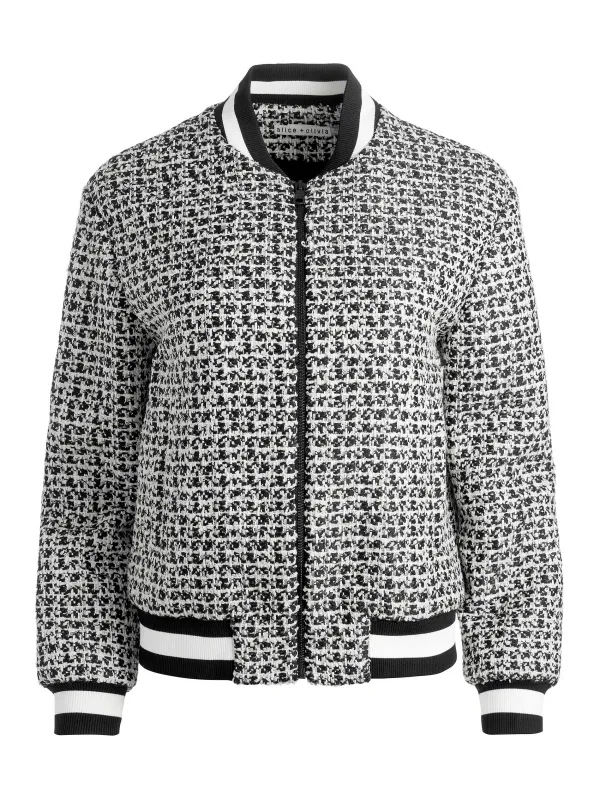 DescriptionThis Bomber Jacket Is A Great Closet Addition. In A Classic Tweed With A Cropped Fit And Varsity Stripes It Looks Great Over Basically Everything. It’S A Fact.Details- Varsity Bomber Jacket
