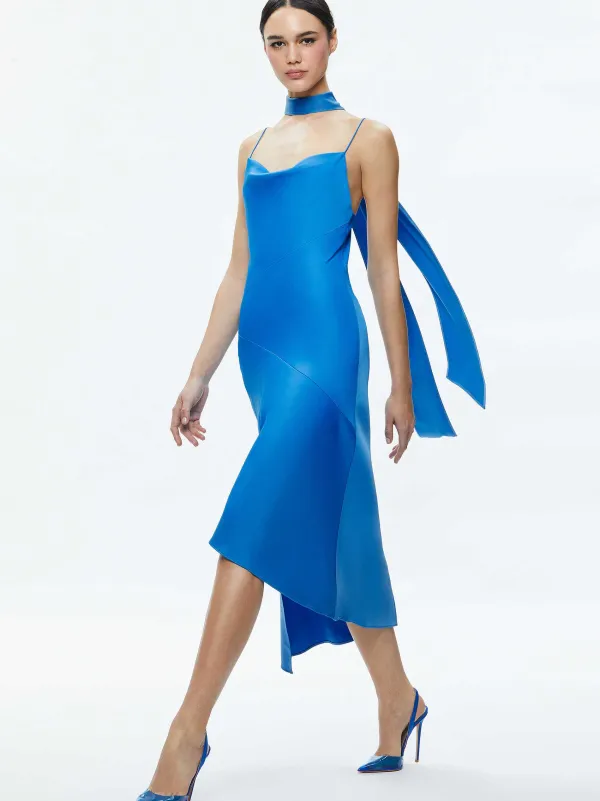 DescriptionOur Version Of A Perfect ’90S-Inspired Slip Dress, This Includes A Cowl Neck, Detachable Scarf, Asymmetric Hem And Slit Up On The Side. Plus, The Color Is Totally So Striking, In A Fabric That Grazes The Body In The Very Best Ways.Details- Midi Slip Dress