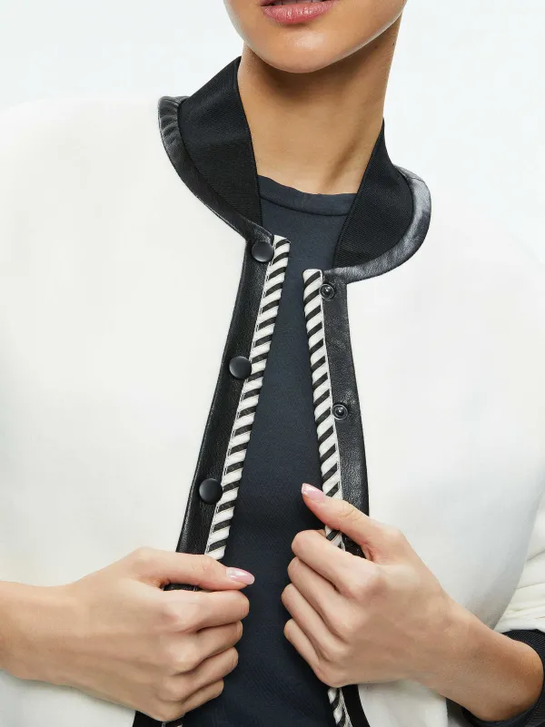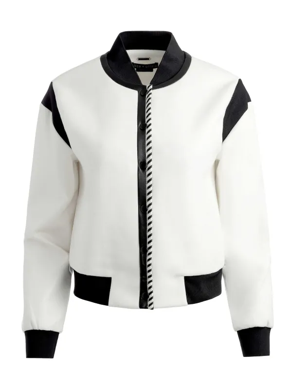 DescriptionThe Classic Varsity Jacket With An A+O Touch: A Slightly Cropped Length, Snap Button Front Closure, And Vegan Leather Sleeves. Throw It Over A Dress, A Tee, Whatever. It’S A Wardrobe Staple You Will-And Should-Wear To The Ground.Details- Varsity Jacket