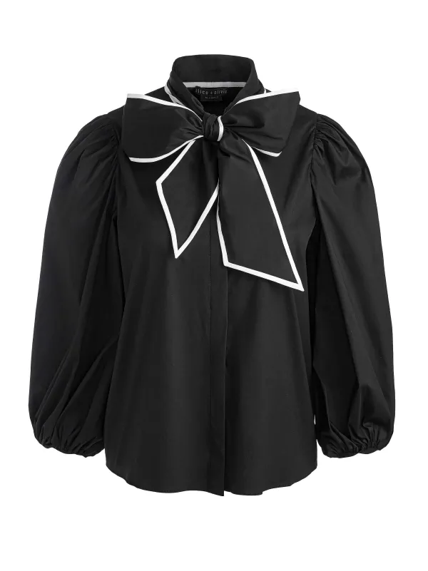 DescriptionThis Chic Top Combines So Many Major Elements Into One Perfect Blouse: Bow Neck, Blouson Sleeves And Buttons Down The Front. Wear It With Your Favorite Trousers And Just Like That You’Re The Coolest Girl In The Room.Details- Button Down