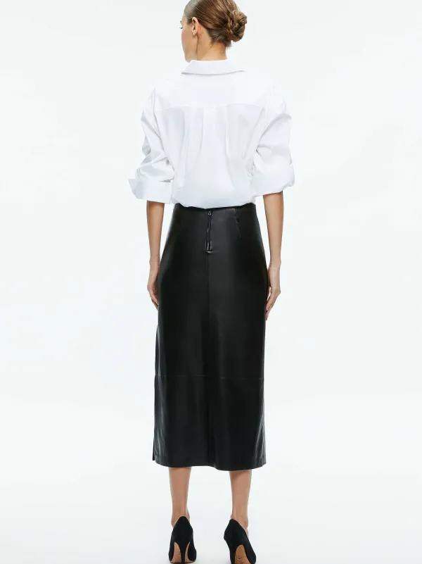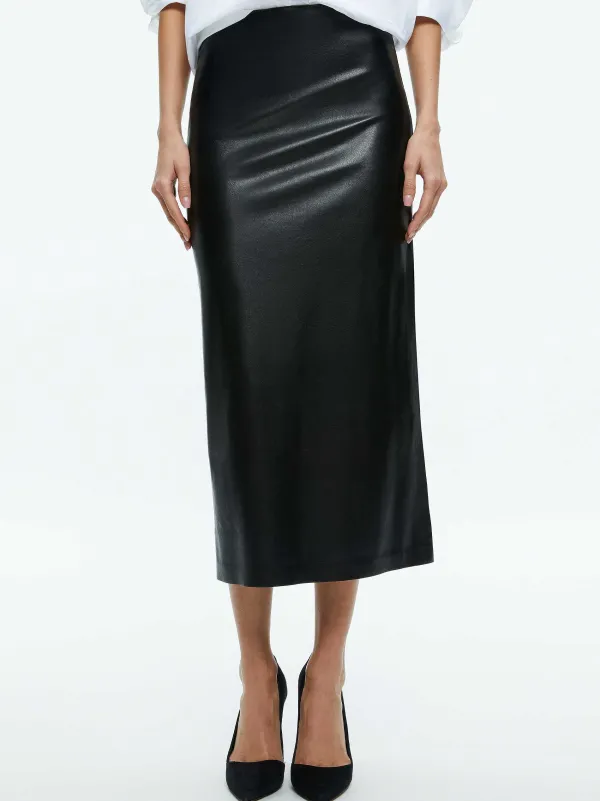 Alice and Olivia Maeve Vegan Leather Midi Skirt-Women Skirts