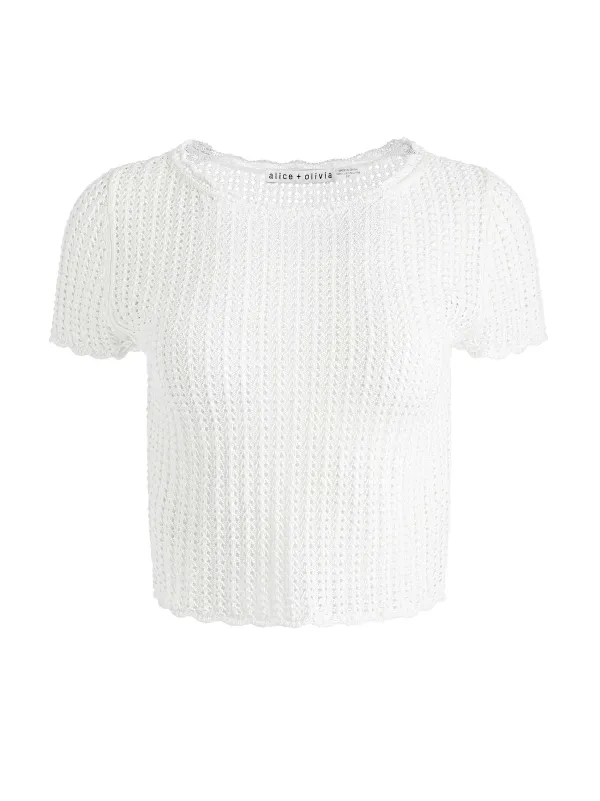 DescriptionThe Perfect ’90S-Style Cropped T-Shirt Gets A Makeover In Crocheted Pointelle. With A Fit That’S So Flattering, It Hugs You Exactly Where You Want To Be Hugged.Details- Cropped Pullover