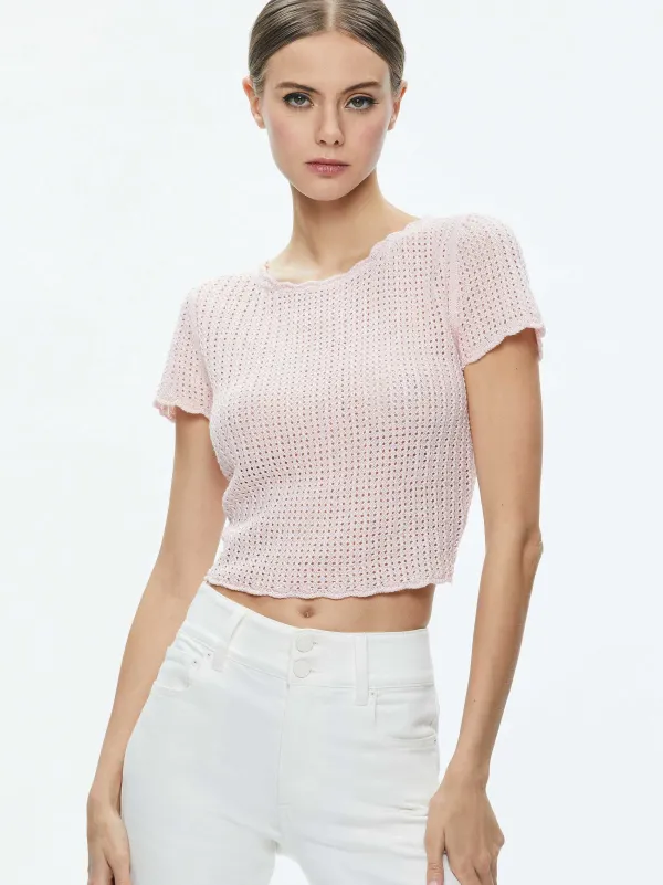 DescriptionThe Perfect ’90S-Style Cropped T-Shirt Gets A Makeover In Crocheted Pointelle. With A Fit That’S So Flattering, It Hugs You Exactly Where You Want To Be Hugged.Details- Cropped Pullover