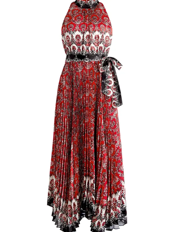DescriptionThis Maxi Dress Is A True Work Of Art. It Includes A Mock Neck, Sleeveless Silhouette, Adjustable Tie Waist And A Gorgeous Boho Print. Plus, That Pleating At The Skirt! It’S Truly Stunning.Details- Maxi Dress