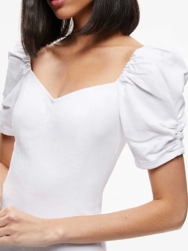 DescriptionAlice + Olivia Jeans Is A Capsule Collection From Alice + Olivia That Was Born And Raised In Los Angeles And Made To Dress Your Inner Rockstar. This Puff Sleeve Denim Minidress Is Super-Versatile And Super-Cute.Details- Sweetheart Neckline