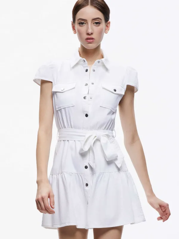 DescriptionA Whole New Way To Wear A Shirtdress: This One Is Crafted From Denim And Includes A Mini Length And Short Sleeves. With A Chic Collar, Patch Front Pockets And Defined Waist For An Extra-Flattering Touch.Details- Mini Dress