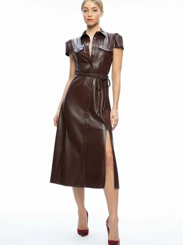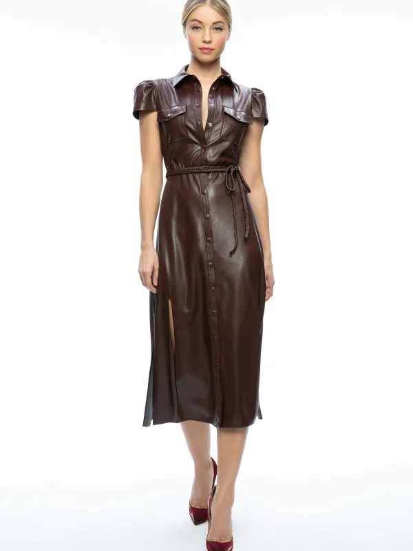Alice and Olivia Miranda Vegan Leather Midi Dress-Women Dresses