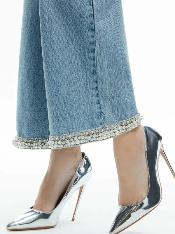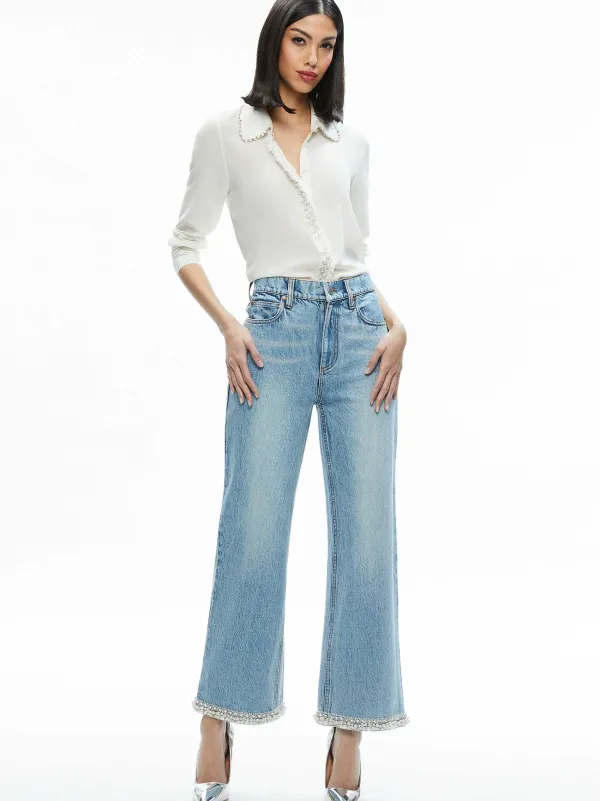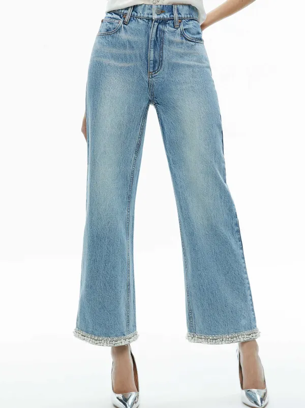 DescriptionOur Ora Jean Features A High Rise, Wide Leg And Embellishments (We Think It’S About To Become Your New Favorite Jean). We Love The Relaxed Fit That Feels Appropriate For Any And Every Day.Details- Wide Leg Jean