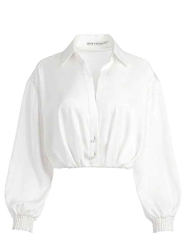 DescriptionCropped. Blouson Sleeves. Back Pleating. The Pierre Button-Down Is Such A Dreamy Top And Drapes In The Prettiest Way. Pair It With A Highwaisted Trouser Or Jean, Or Really Anything Else You Love. You’Re Going To Look Good, We Just Know It.Details- Cropped