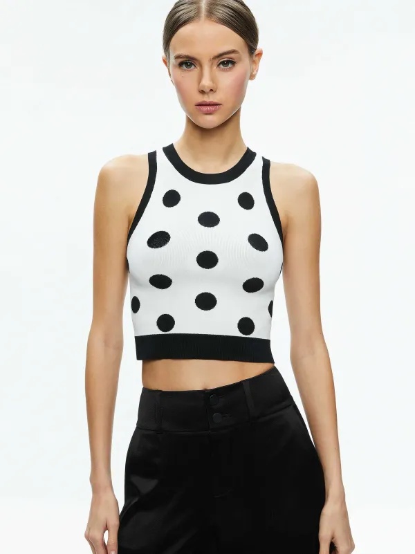 DescriptionA Bold, Ribbed Tank (With A Crazy-Flattering Fit) Is A Wardrobe Staple And This One Fits The Bill Perfectly. It Includes Polka Dots, A Round Neckline And A Slightly Cropped Length So You Can Pair Easily With High Risers (Or Any Rise At All).Details- Fitted Tank Top