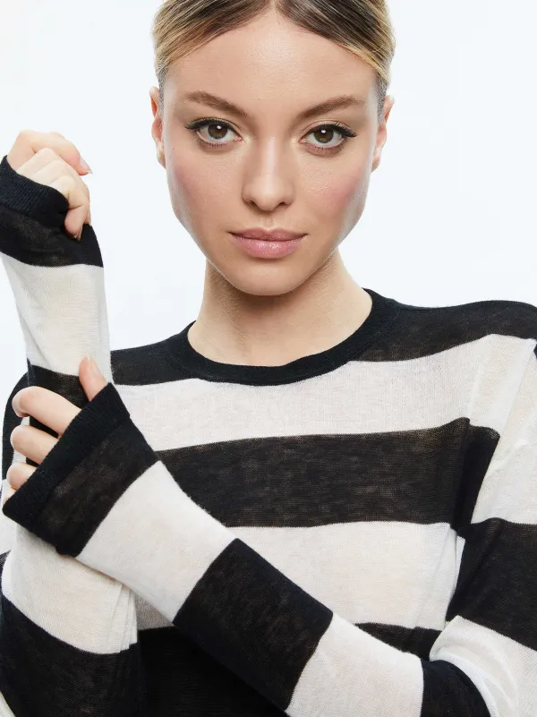 DescriptionAn Easy Pullover Style, The Sherrell Sweater Is One You’Ll Reach For Every Day (We Speak From Experience). With A High Neckline, Dropped Shoulder, Slim Sleeve And In A Classic Black And White Stripe, There Are So Many Things To Love About It.Details- Cropped Pullover