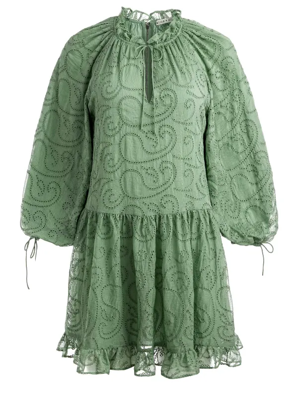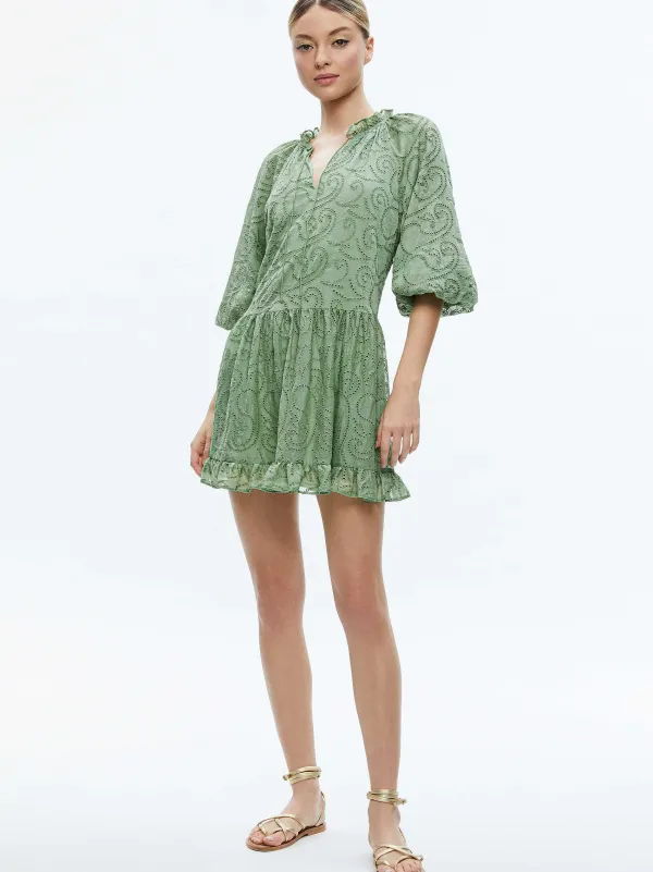 DescriptionPrairie-Chic, The Sherrie Tunic Is An Airy, Voluminous Minidress That Includes 3/4 Sleeves, A Ruffled Hem And Smocked Collar. We Also Love That The Sleeves Can Be Tied To Contain Some Of The Volume.Details- Tunic Dress