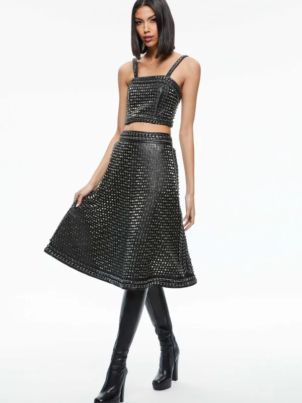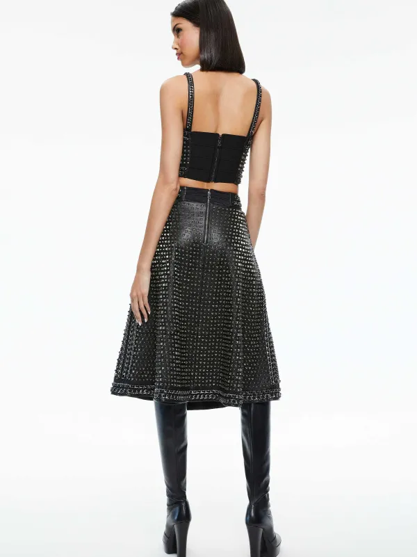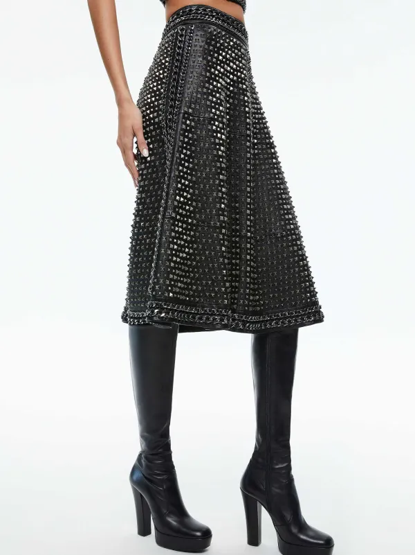 DescriptionA Midi Skirt That Feels So Right For Right Now, Complete With Studs. This Includes A High Rise And Back Zipper Closure. Add A Cute Crop Top Or A T-Shirt And You’Re The Chicest.Details- Midi Skirt