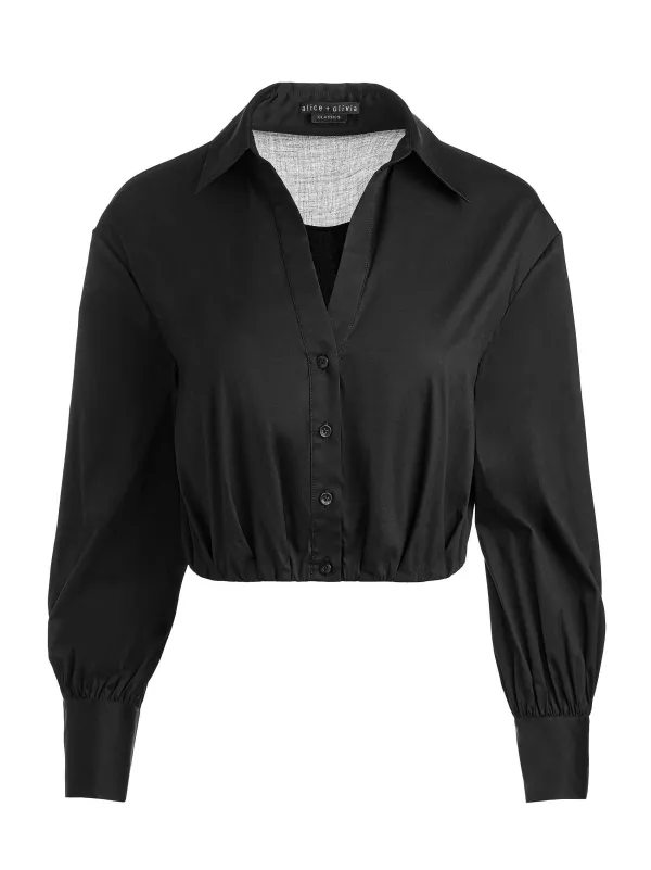 DescriptionA Shirt With A (Literal) Twist: Trudy Includes An Architectural Construction, Long Sleeves, Pleated Front And Elastic At The Waistband To Keep That Cool Detail Intact.Details- Cropped Button Down