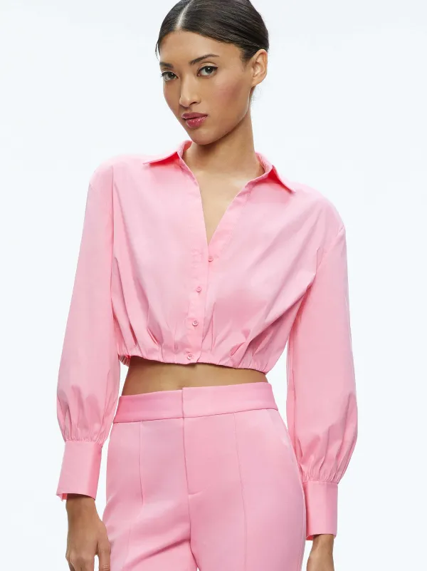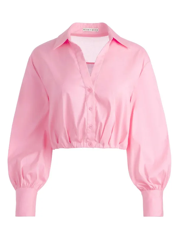 DescriptionA Shirt With A (Literal) Twist: Trudy Includes An Architectural Construction, Long Sleeves, Pleated Front And Elastic At The Waistband To Keep That Cool Detail Intact.Details- Cropped Button Down