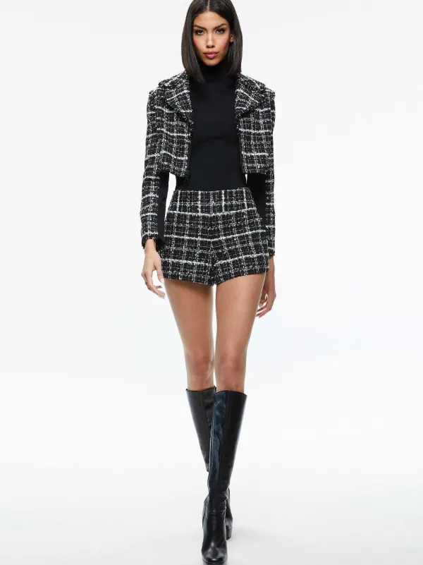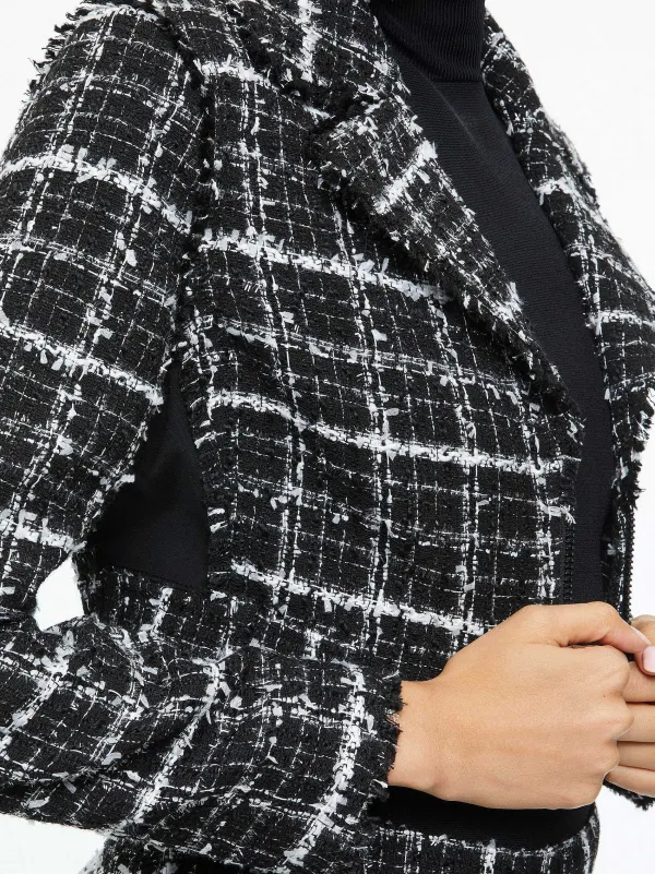 DescriptionAn A+O Take On The Classic Moto Jacket. This Cropped Number Includes Metallic Tweed, A Collar, Elastic Back Hem And Zippers At The Sleeves.Details- Cropped Jacket